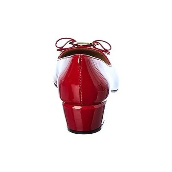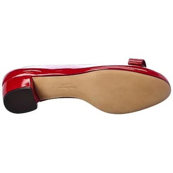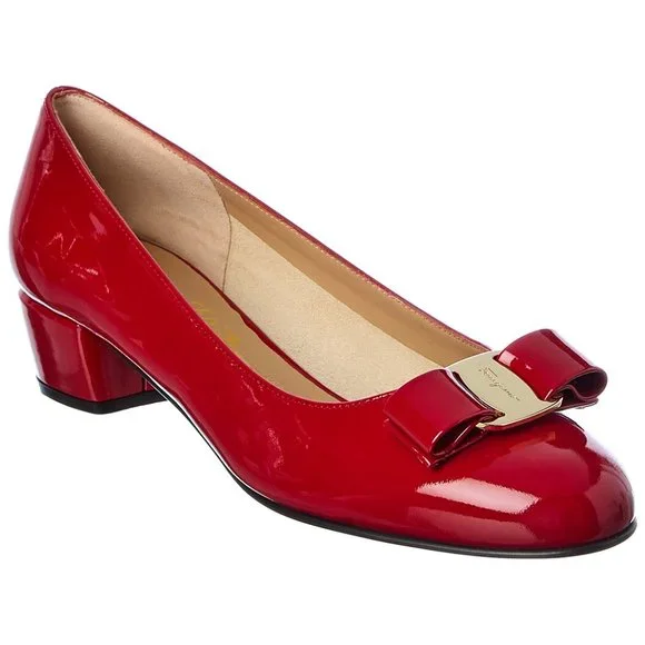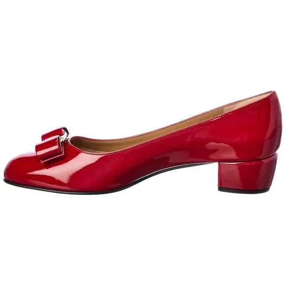 Salvatore Ferragamo Vara 1 Patent Low Bow PumpColor: RossoSize: 37B7B (Medium)A lustrous patent leather style features lovely bow detail and signature hardware at the round toe.Self-covered chunky heel, 1.75" (45mm)Leather upperRound toeSlip-on styleLeather lining and solePadded insoleMade in ItalyBrand new in box with tissue papers, 100% genuine.Bought from Nordstrom, never ended up wearing them.Free shipping. Open to reasonable offers.
