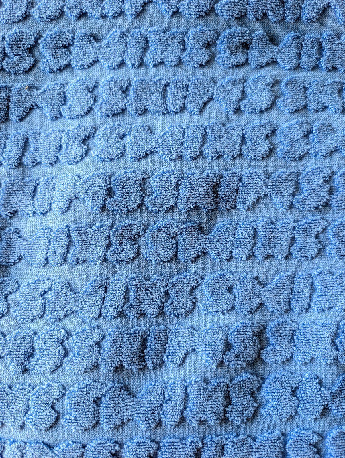 Dimensions: 65” x 40”, All-over continuous logo in terry fabric.