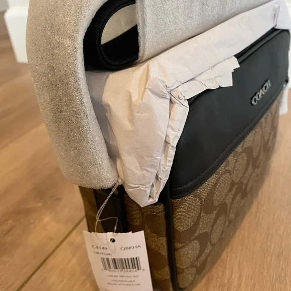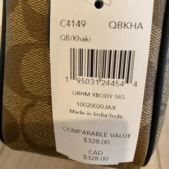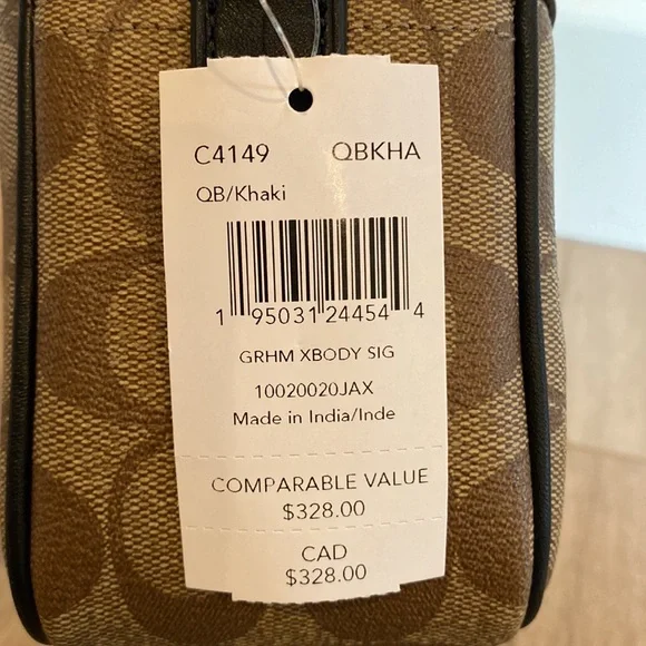 GRAHAM CROSSBODY IN SIGNATURE CANVAS (COACH C4149)QB/KHAKICOACH STYLE # C4149Signature coated canvas and smooth calf leather| Inside multifunction pockets| Double zip closure, fabric lining| Outside slip pocket| Adjustable strap with 25" drop for shoulder or crossbody wear| 9" (L) x 5 3/4" (H) x 2 3/4" (W)Style No. c4149