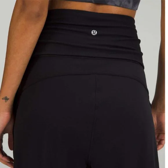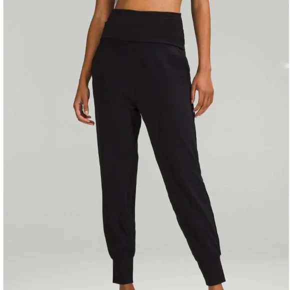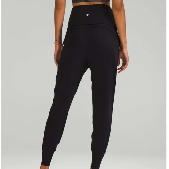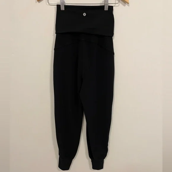 Lululemon Align Super-High-Rise Ribbed-Waist Jogger Black 0When feeling nothing is everything. Powered by Nulu™ fabric, this version of our lululemon Align™ joggers has the same buttery-soft feel with an adjustable, foldover waistband.feels buttery-soft and weightless, nulu™ fabricSo buttery-soft, it feels weightlessFour-way stretchSweat-wickingBreathableAdded Lycra® fibre for stretch and shape retentionfeaturesFront pockets with interior card sleeveBack drop-in pocketSuper-high-rise ribbed waistband can be worn folded or scrunchedThis collection’s great for low-impact workouts like yoga or whenever you want to feel really, really comfortableMeasurements11" waist laid flat25" inseamExcellent condition. Pet & smoke free home. Open to offers ❤️