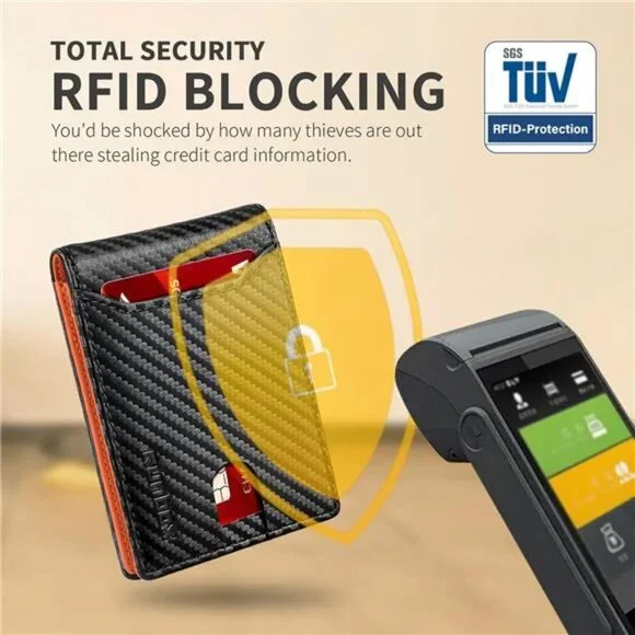 🧿Carbon Leather🧿Leather lining🧿No Closure closure🧿Slim Wallet for Men - RUNBOX large capacity wallets offer 12+ cards pockets and 1 bill compartment to meet everyday carry needs, the money pocket help comfortably store up to 15 bills, banknotes, the thin bifold wallet is ideal for carrying business cards, credit and debit cards. Comfortable in the front and rear pockets.🧿Rfid Blocking Protection - Our rfid mens wallets are equipped with advanced RFID security technology, unique metal composites, Your credit cards, debit cards, driving license and ID cards will be protected effectively. Block the 13.56 MHz band and protect against data theft by RFID scanners.🧿More Durable & Stronger - Made with the finest vegan leather material and stitched with precision and detail. Even if you friction it many times, it will not be easily damaged. The first class craftsmanship, soft and comfortable, the leather gives a premium look while making it durable.🧿A Great Present - This men slim wallet comes in nice gift box packaging, is a perfect present for birthday, anniversaries, Fathers Day, Christmas or just because, so you can easily gift it to your bf, hubby, dad, friends, co-workers.